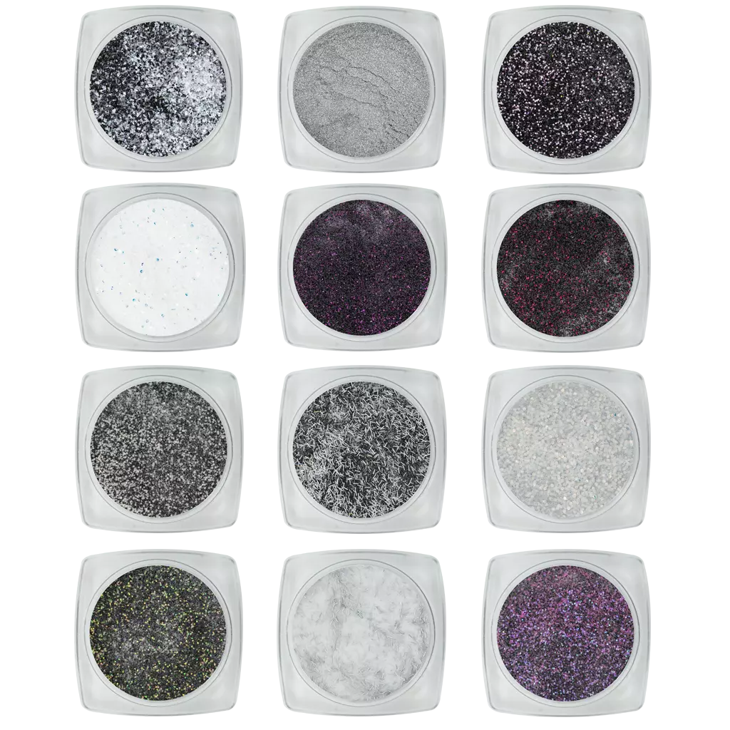 12 verschillende kleuren Deze poeder is ideal voor designs, achtergrondjes en color french manicure.