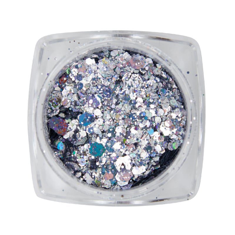 De metal inlay is te gebruiken voor inlay of in te poetsen met een fluffy in je plaklaag. Het zijn Grote en kleine glitters door elkaar.